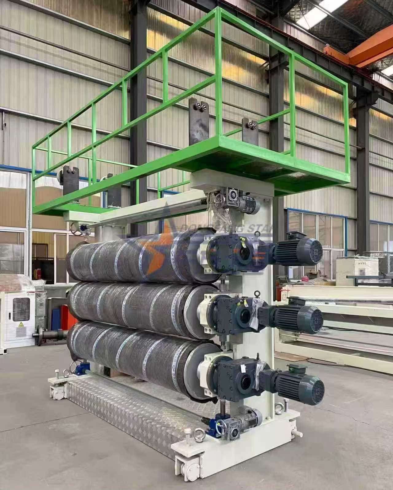 Опис: дзеркальні валики великого діаметру ∮450 мм × 2200 мм (твердість RC60-65) з незалежним контролем температури та системами приводу. Рівномірна та постійна температура поверхні валика дозволяє швидко формувати та усувати сліди розтікання, що є ключем до виробництва високоякісних корпусів приладів та рекламних щитів.