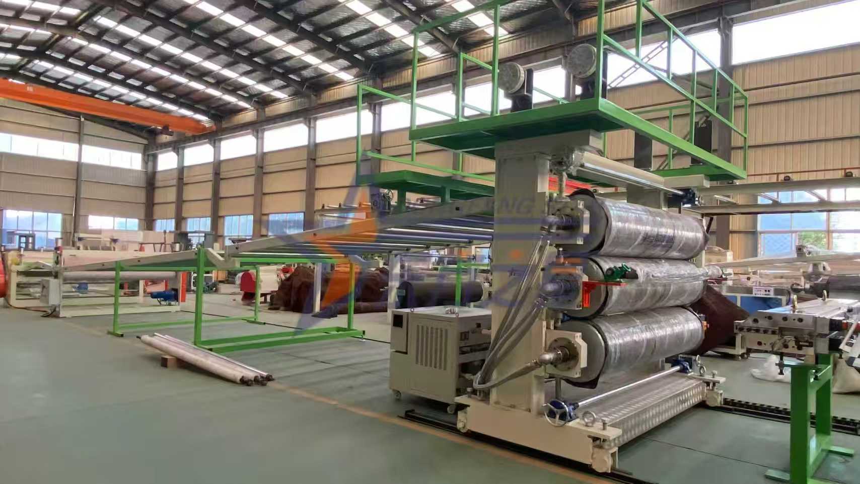 Опис: Оснащений гідравлічним перемикачем екрану HW-180, він дозволяє швидко замінювати екран без зупинки машини, що значно скорочує відходи та час простою. Уся лінія використовує регулювання швидкості перетворення частоти ABB для досягнення точної синхронізації від каландрування та тяги до різання, підтримуючи безперервне та стабільне виробництво 24/7.