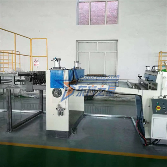 Екструдерна лінія HDPE Geogrid використовується для виробництва геоелементів. Першим кроком цього продукту є виготовлення листів, потім листи розрізаються в режимі онлайн, а потім пластикові листи з’єднуються через