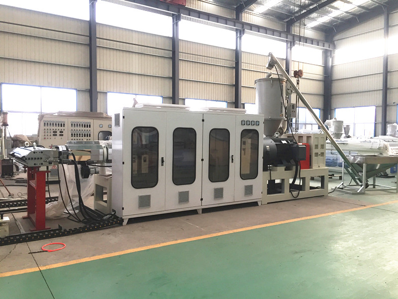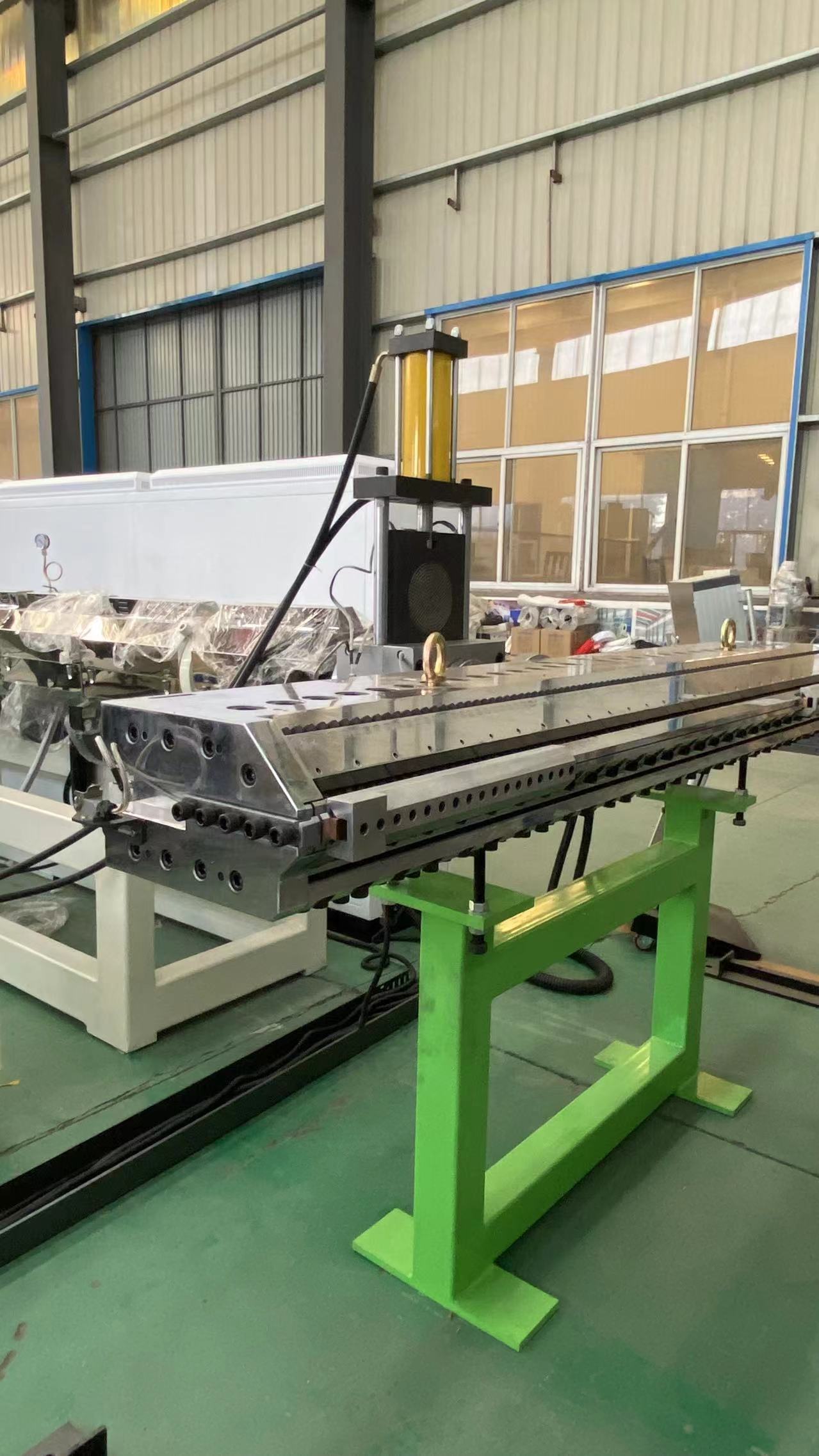 Основне обладнання – одношнековий екструдер SJ150×33Лінія виробництва поліетиленових алюмінієво-пластикових панелей, має численні технологічні переваги. Шнек і стовбур екструдера виготовлені з матеріалу 38CrMoAlA і проходять обробку азотуванням, досягаючи глибини нітрифікації 0,50-0,70 мм, що забезпечує зносостійкість і стабільність при тривалій швидкісній роботі. Екструдер оснащений сімома зонами нагріву та потужністю нагріву 42 кВт, що забезпечує максимальну продуктивність екструзії 800 кг/год, що відповідає потребам високоефективного виробництва. Основний двигун використовує двигун змінного струму Siemens потужністю 160 кВт у поєднанні з гвинтовим редуктором, що забезпечує плавне регулювання швидкості від 0 до 70 об/хв.