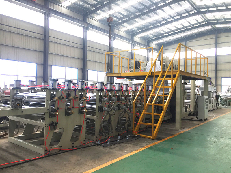 Qingdao EASTSTAR завершеноЛінія виробництва поліетиленових алюмінієво-пластикових панелейскладається з одногвинтового екструдера SJ150 × 33, композиційної головки, тривалкового каландра, двостороннього розмотувача алюмінієвої котушки, двовалкового термічного ламінатора, восьмивалкового термічного ламінатора, шестивалкового охолоджувального направляючого валу, ламінатора, чотирьохвалкового відтяжного пристрою та різака. Система PLC забезпечує інтелектуальне керування всією лінією.