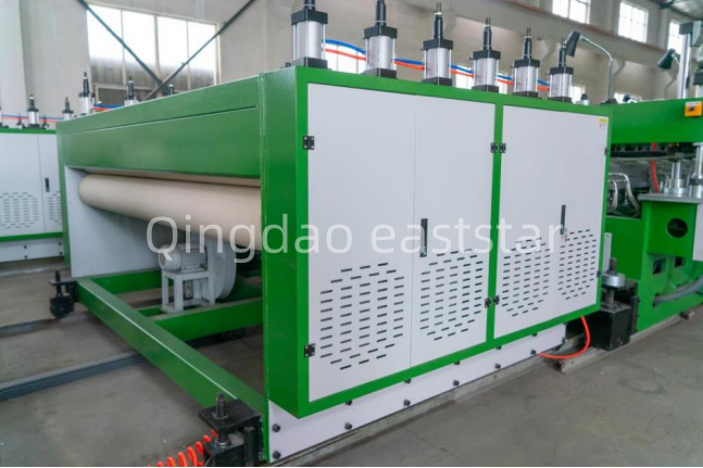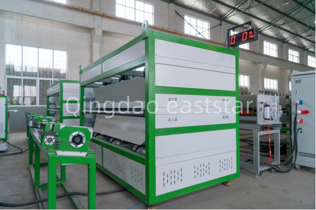 ВесьОбладнання панелей з відкритою сіткою ППтакож включає aдвостанційний гідравлічний пристрій зміни екрана, арозрівнювальна піч, і aпотужнийпристрій повітряного охолодження. Перша тягова машина оснащена 6 парами по 12 гумових роликів, кожен з розміром поверхні ролика ¢250x2300 мм, що приводиться в рух двигуном потужністю 7,5 кВт. Вирівнювальна піч має діапазон контролю температури 40℃-150℃, розділений на 16 зон для забезпечення рівності дощок. TheЛінія виробництва пустотілої дошки ППтакож оснащений машиною для поперечного різання та платформою для штабелювання для досягнення автоматизованого виробництва.