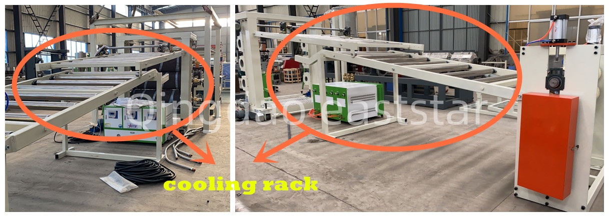 Ми обладналиЛінія виробництва багатошарових коекструзійних листів ABSз повною кормовою і допоміжною системою. Екструдер SJ-130 оснащений шнековим живильником з нержавіючої сталі E-1000, а екструдер SJ-70 оснащений вакуумним живильником E-300, що забезпечує точну подачу різної сировини. Охолоджувальна опора оснащена роликами з нержавіючої сталі довжиною 8 метрів і трьома регульованими кромкорізами, що забезпечує достатнє охолодження листа і акуратні краї. Машина для різання використовує механічні електричні ножиці, оснащені корейським кодувальником Autonics, для досягнення автоматичного різання фіксованої довжини.