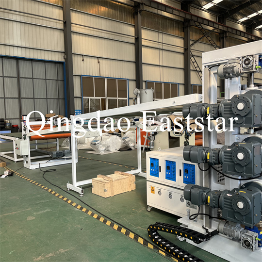 Обладнання екструдера для протиковзких плит з м’якого ПВХ: обладнання в основному складається з одногвинтового екструдера, тривалкового каландра, 6-метрового охолоджувача