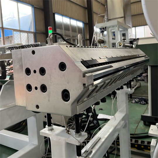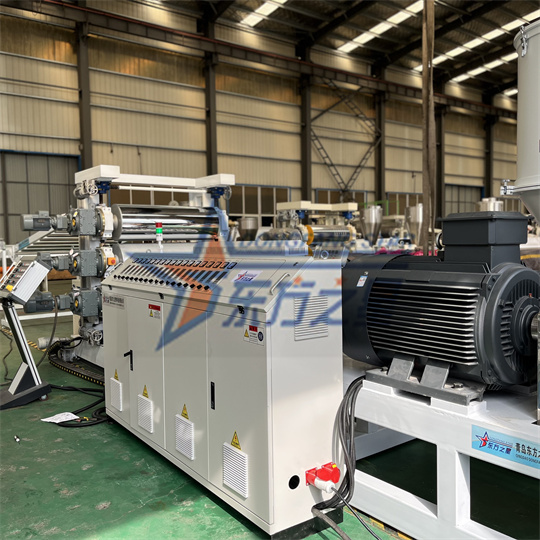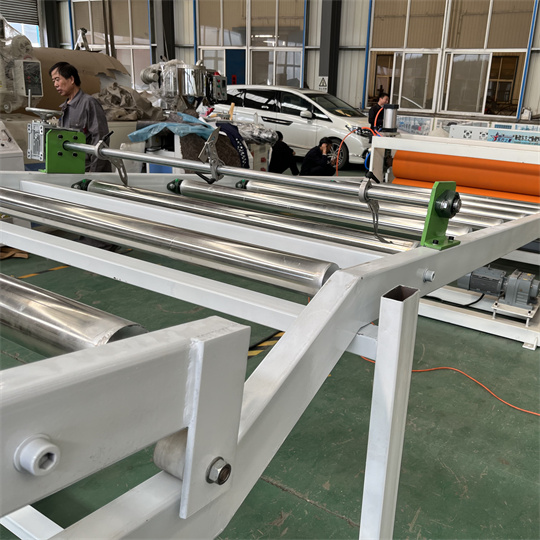 Обладнання для антистатичних дощок із ПВХ: Обладнання в основному складається з одношнекового екструдера на 120 гвинтів, тривалкового каландра, охолоджувального кронштейна, тягової машини з гумовими роликами, ножиці та