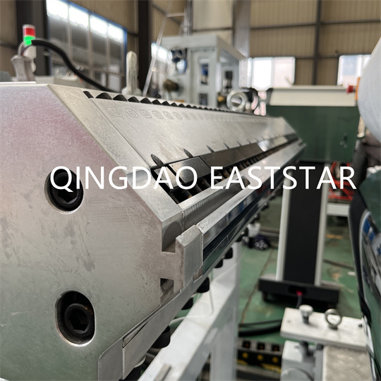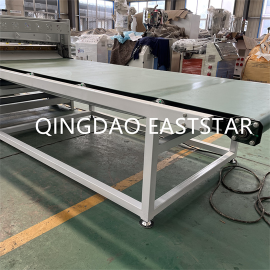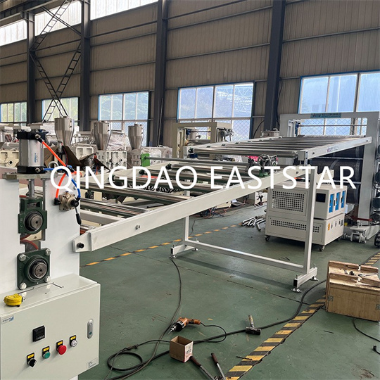 Обладнання панелей для навісу з ПВХ в основному складається з двогвинтового екструдера, прес-форми, тривалкового каландра, охолоджувального кронштейна, тягової машини з гумовими роликами, різальної машини та транспортувального пристрою.