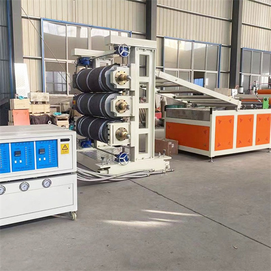 матриця з регульованою прес-формою, вертикальний дзеркальний каландр, машина для температури води три в одному, резервуар для охолоджувальної води з нержавіючої сталі та оснащений широким регульованим тримером для обрізання країв і гумовим роликом.