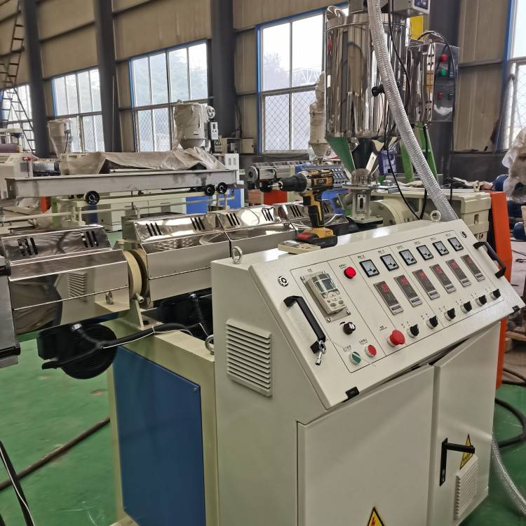 Обладнання для наклеювання кромки ПВХ Технічні параметри та комплектація 1 Технічна модель SJ65-28/1 2 гвинта діаметром 65 мм 3 Співвідношення довжини гвинта до діаметра 28:1 4 Гвинтова конструкція типу ПВХ спеціальний гвинт 5 Конструкція ствола Вбудований ствол 6 гвинтів, матеріал стовбура 38CrMOALA 7 Обробка азотуванням шнека та стовбура Обробка азотуванням Термін служби 8 гвинтів і бочок близько 3 років 9 Потужність двигуна змінної частоти головного приводу 18,5 кВт