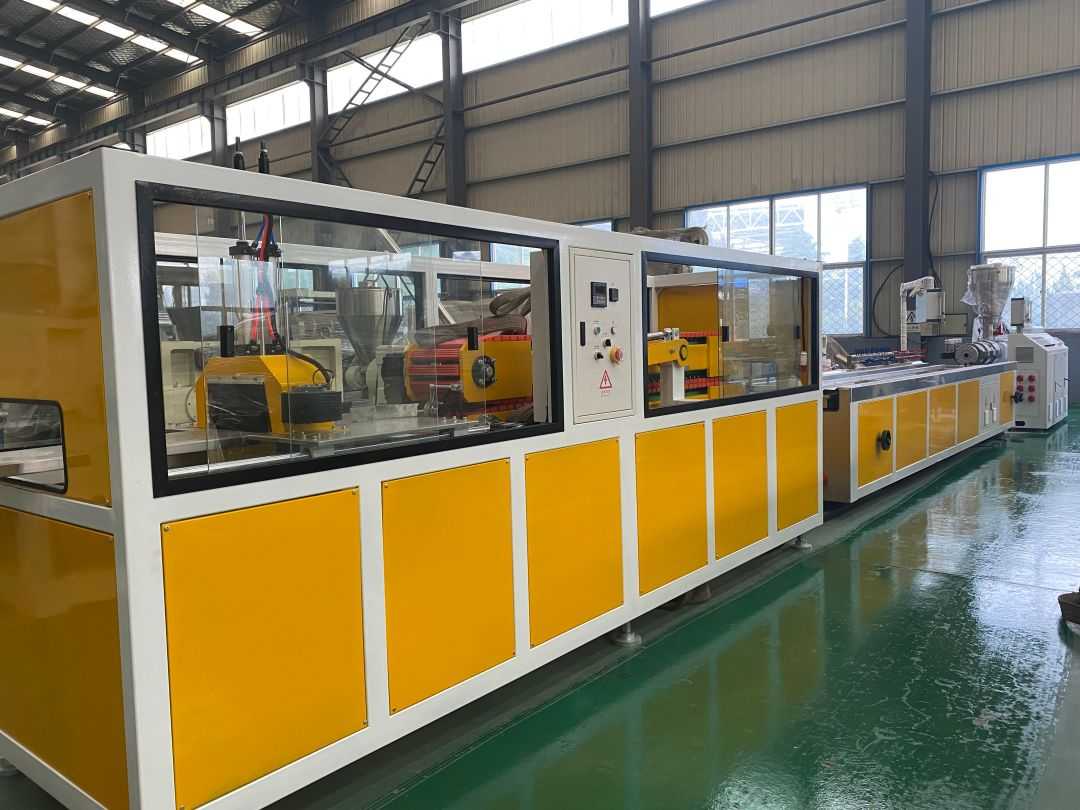 Виробнича лінія для екструзії дерев’яної пластикової підлоги з ПВХ. Виробнича лінія для екструзії дерев’яної пластикової підлоги використовує конічний двошнековий екструдер SJZ65/132, який спеціально використовується для екструзії, пластифікації та формування сировини порошку ПЕ + порошку деревини. Він має характеристики високої продуктивності, хорошого ефекту пластифікації та низького споживання енергії.